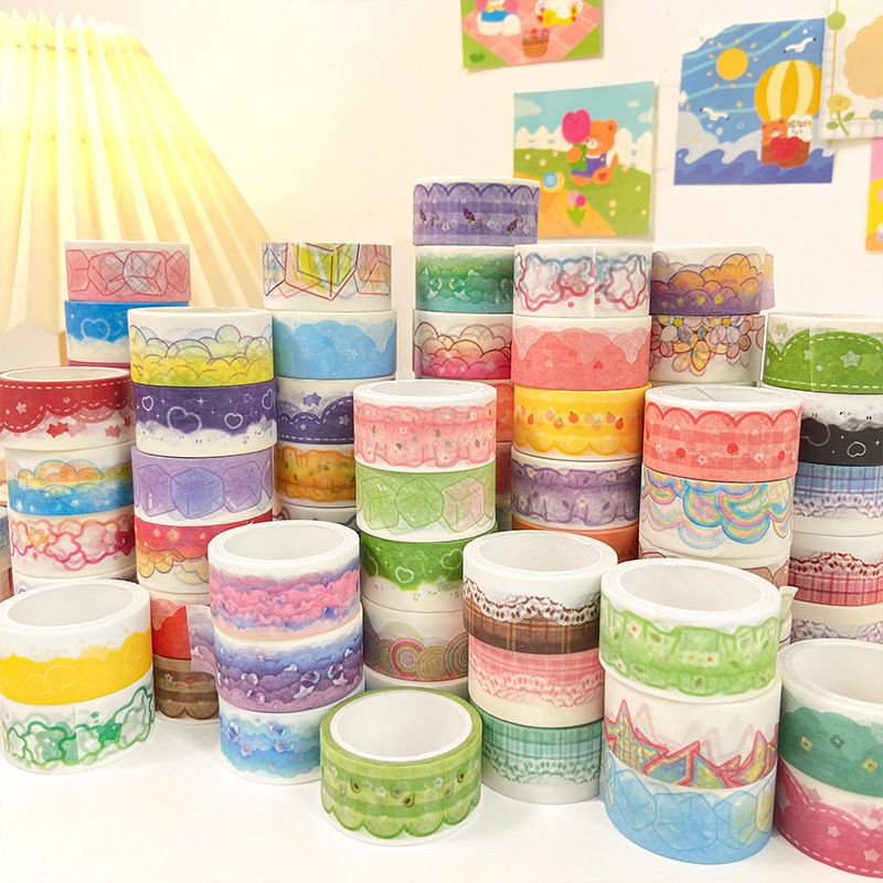 妍舎幻文字特油テープ手帐ステッカー波造景和纸素材异形额縁手帐フィルム