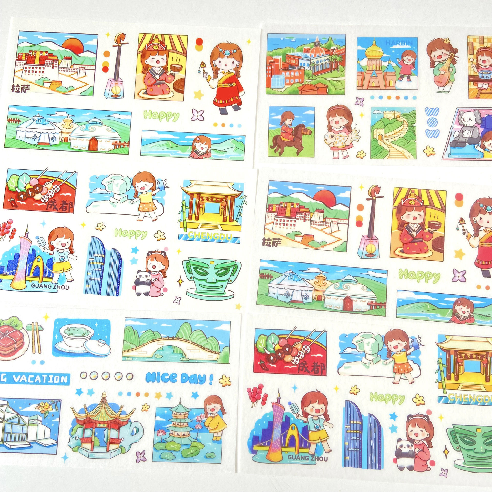 悦木小西環旅行記シールパック (8枚入) 3種類の材質手帳装飾素材DIYステッカー