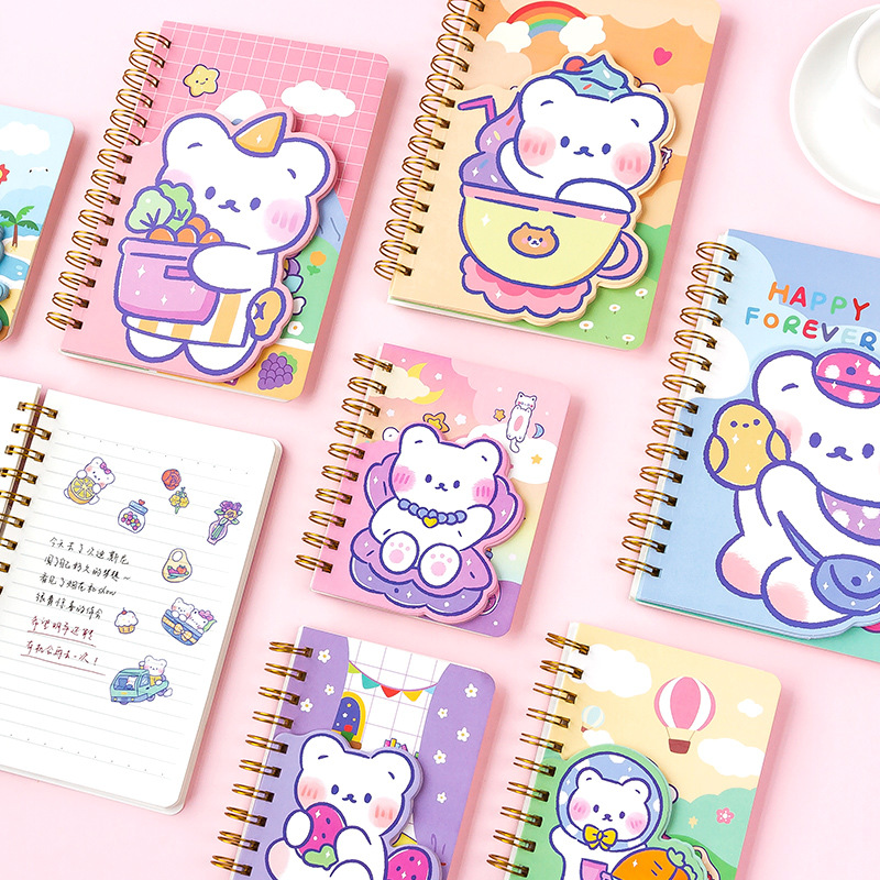 宇宙のかわいいカプセルの線巻本の漫画の柔らかい萌え熊のかわいい異形の付箋のメモ帳の学生の8種類