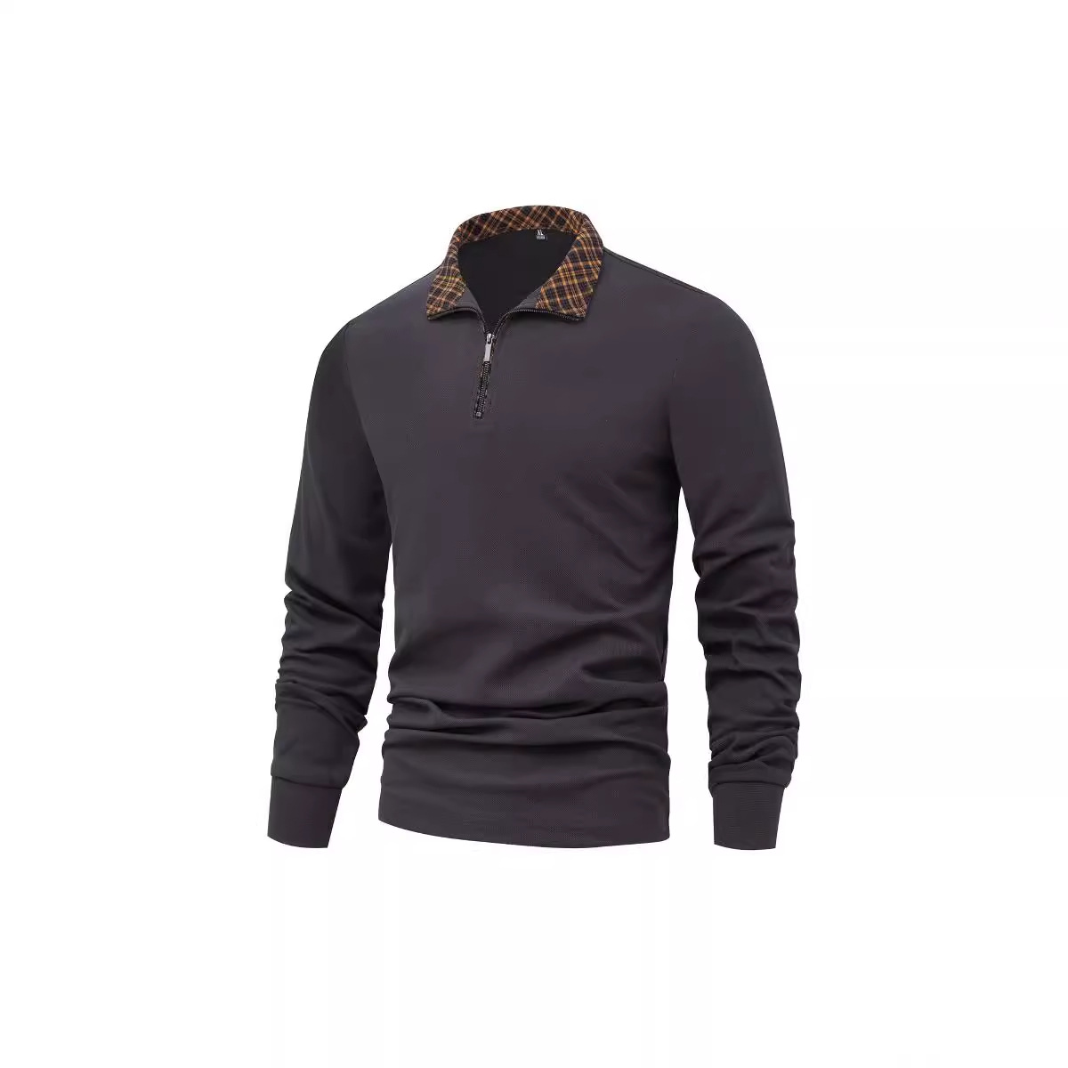 2024秋冬長袖poloシャツ男軽ビジネス襟高品質ファスナー立襟長袖インナーカジュアル
