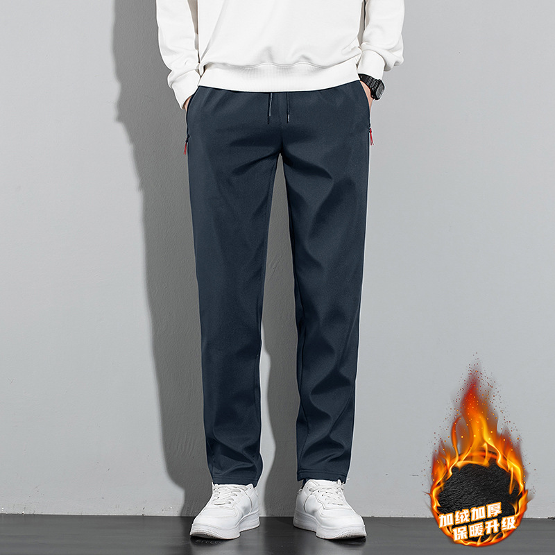男性の秋冬のファスナーのポケットのスポーツズボンとベルベットの厚いレジャーの保温の潮流の百合の複合のベルベットのズボン