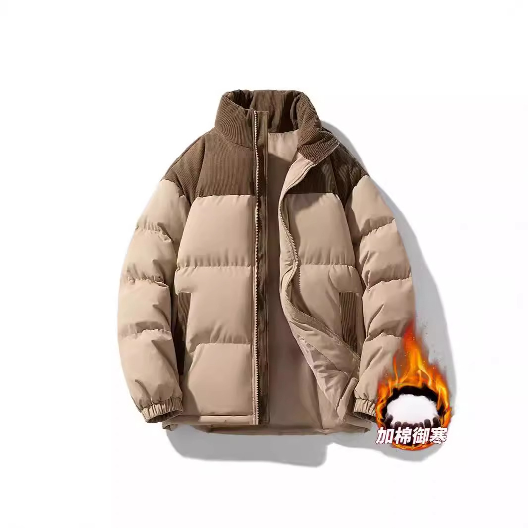 2024綿の服の男性の短いタイプの秋冬の新型の立襟は厚くて暖かい青年の冬服の野球の襟のゆったりしているコートを厚くします。