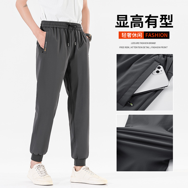 2024新型氷糸スポーツパンツ男性夏の薄い弾力性速乾ズボンのゆるい通気性カジュアルパンツの大きいサイズのズボン