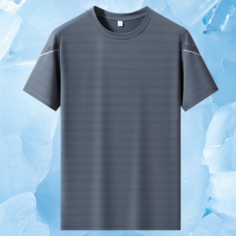 2025年新作 夏用 大きいサイズ アイスシルク 半袖Tシャツ おしゃれ トレンド スポーツ ランニングウェア 冷感 アウトドア メンズ クロスボーダー
