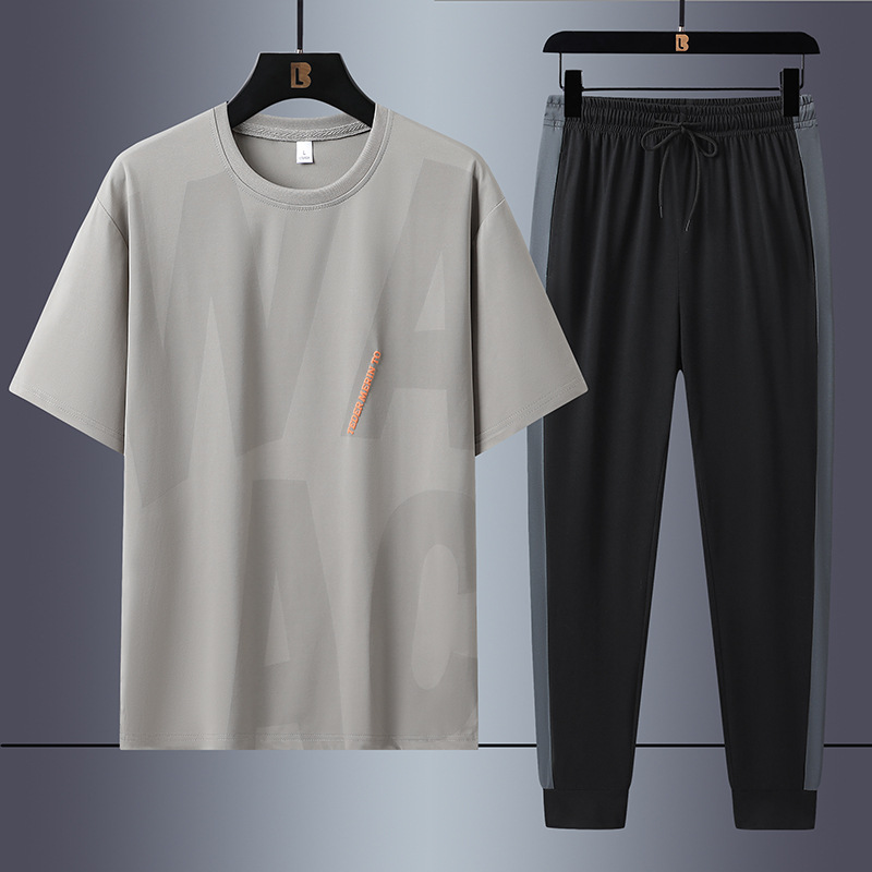 新しい夏の綿のスーツの男性の薄いタイプの速乾の通気性の丸首の運動のスーツのズボンの半袖のレジャーのスーツの高さ