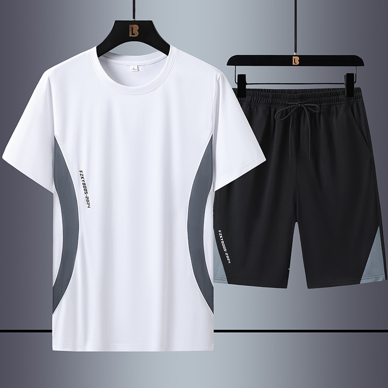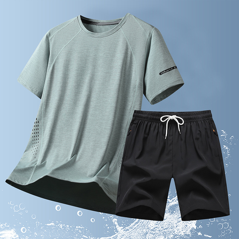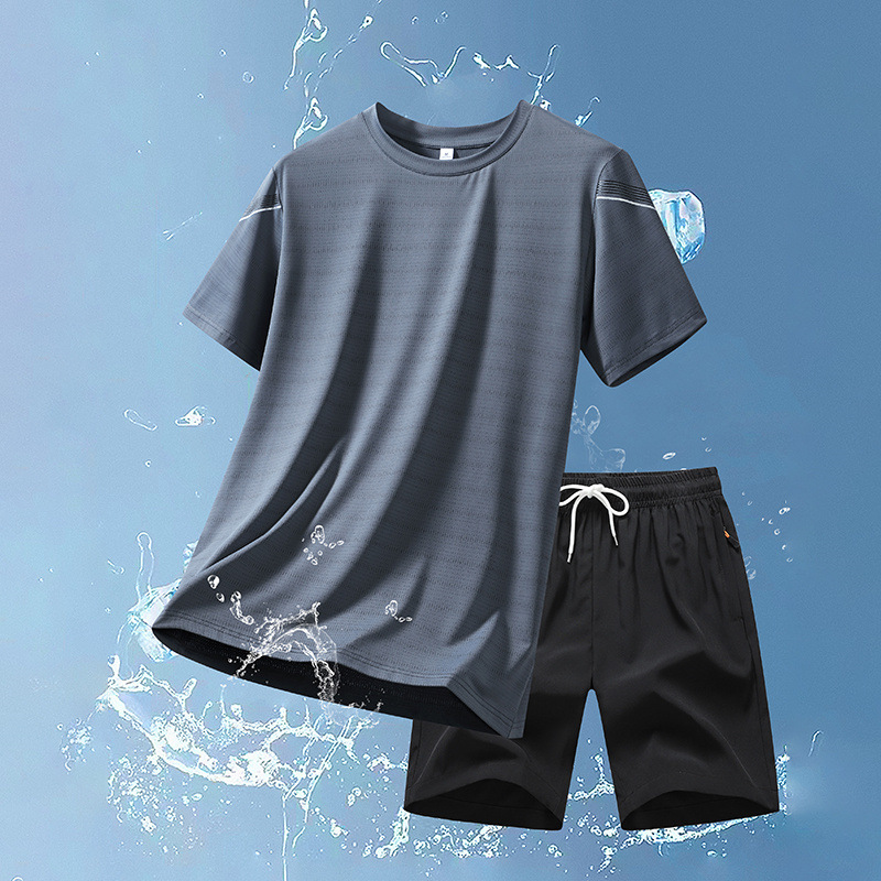 2024新品メンズランニング速乾スポーツアイススーツ男夏速乾スーツショートパンツ半袖スポーツウェア五