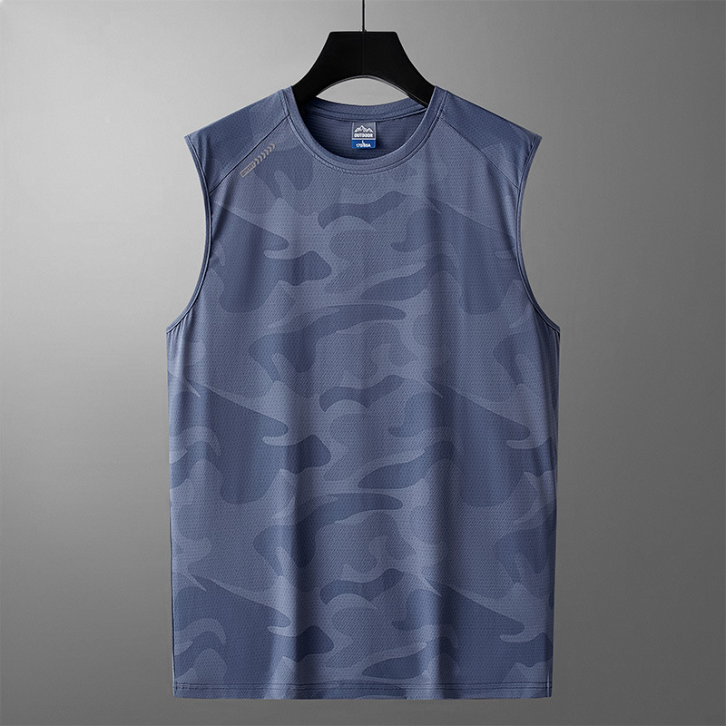 2024新型中青年迷彩氷糸袖なし半袖tシャツ男性夏薄手ゆるい速乾性tシャツランニング