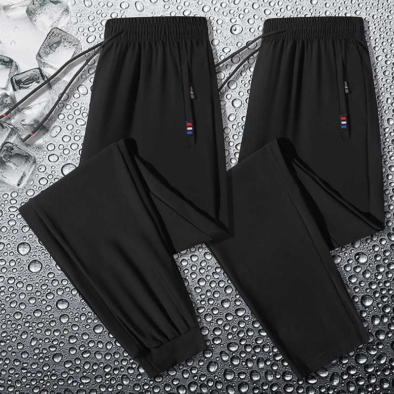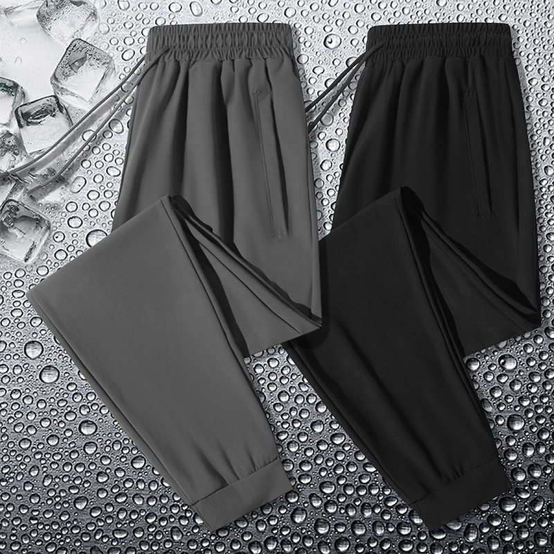 夏の氷の糸の速乾のカジュアルなズボンの男性の薄い金のまっすぐな筒の束の足のズボンの通気性の大きいサイズのスポーツのズボンの爆発的な氷