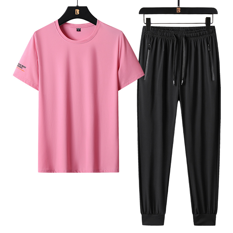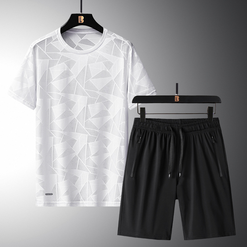 ナイロン氷糸ジャカード半袖ショーツセットカジュアル通気性トレンド氷糸ズボンスポーツtシャツ2点セット夏