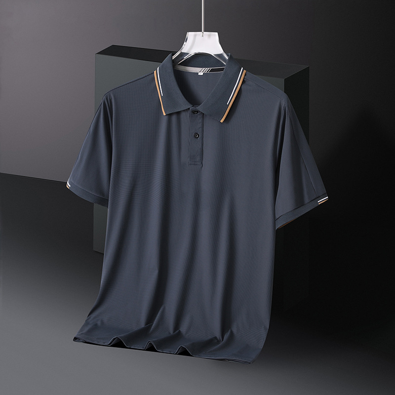 8xl大きいサイズpoloシャツ男夏2024新作紳士服氷糸折り襟カジュアル立襟半袖tシャツ上着体
