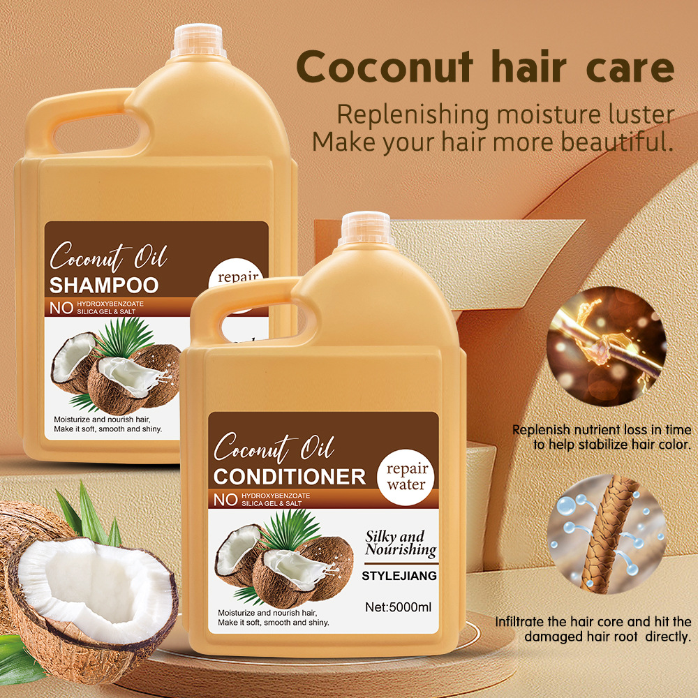 国境を越えたココナツオリーブ潤いコントロールシャンプー乾燥損傷を修復するヘアコンディショナー5L大容量洗浄保護