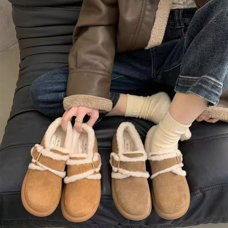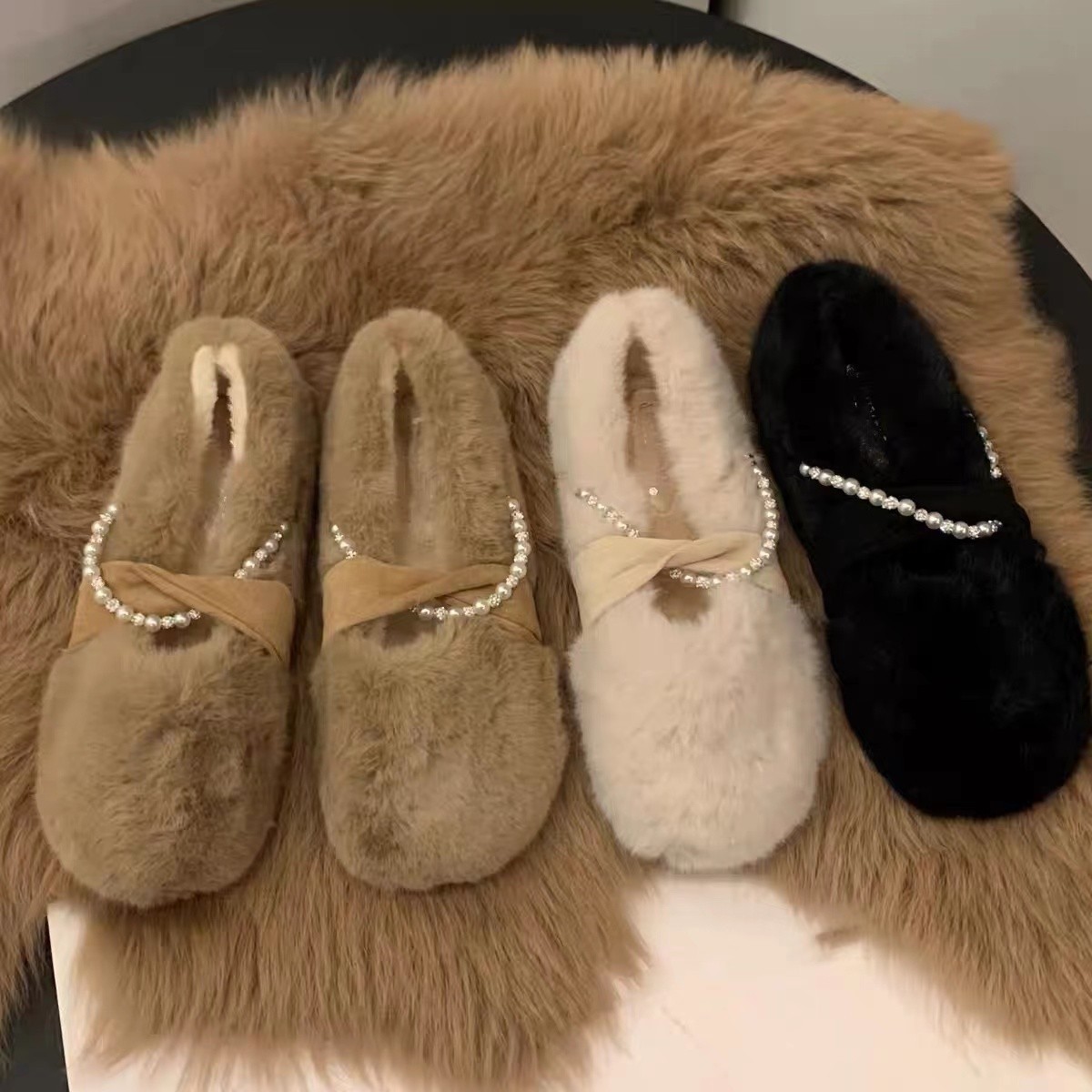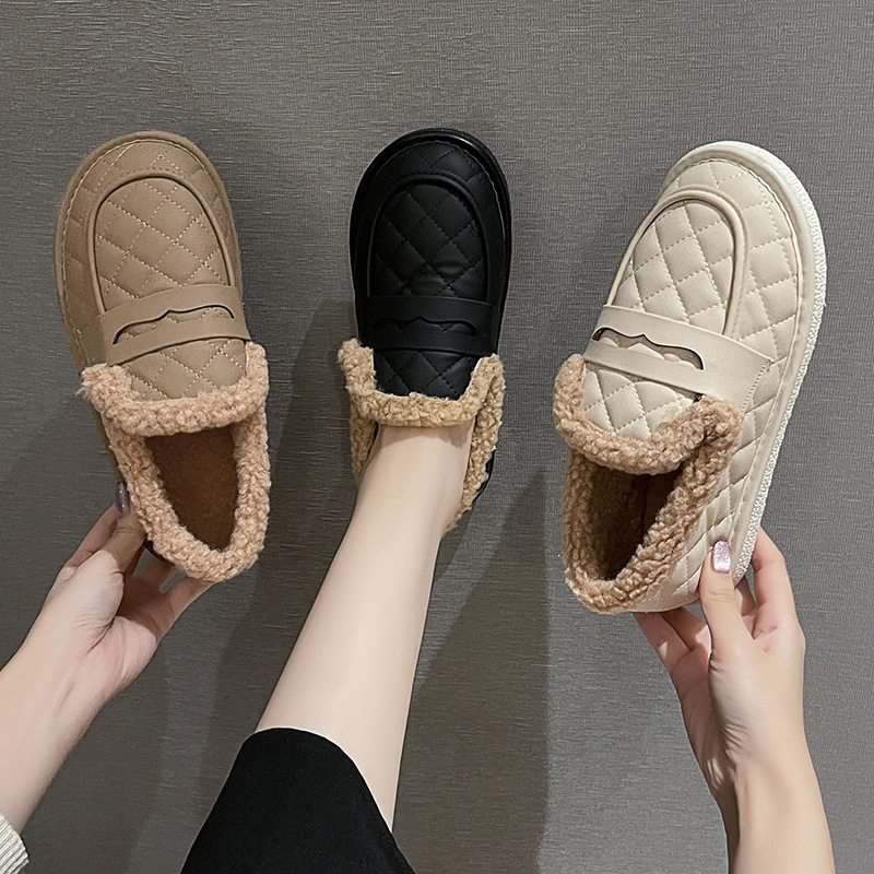 ベルベット保温楽福靴女2024秋冬新平底綿靴韓国版一足漕ぎ怠け者毛豆靴