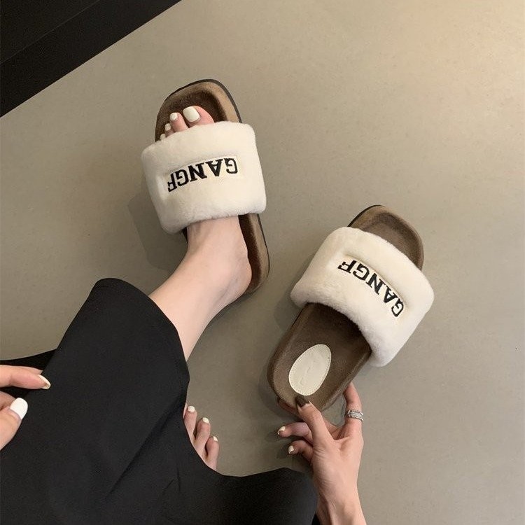 厚い底のファッションは色の毛のスリッパを合わせます。