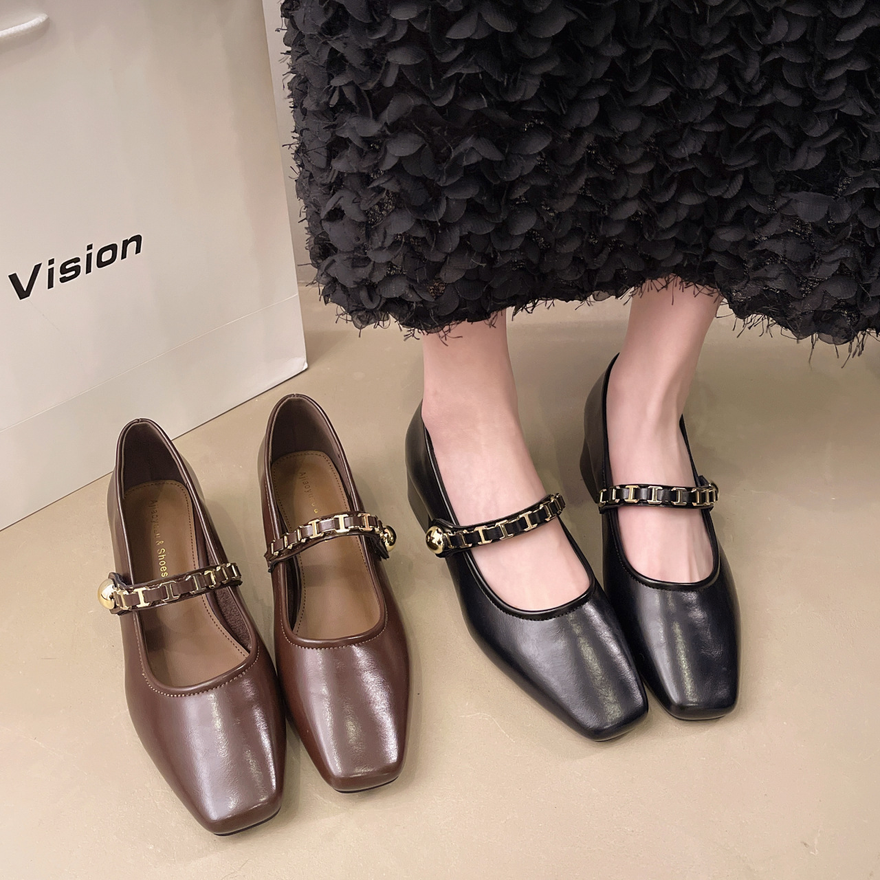 フランスの柔らかい皮のメアリー珍の靴の女性の2025春夏の新型の復古風はスカートの中と小さい靴の角の靴を配合します。