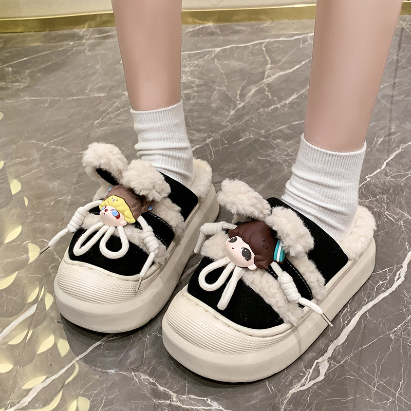 毛羽包頭スリッパ女2022冬の新型外着厚い底が高くなったベルベット綿靴毛皮一体雪地靴