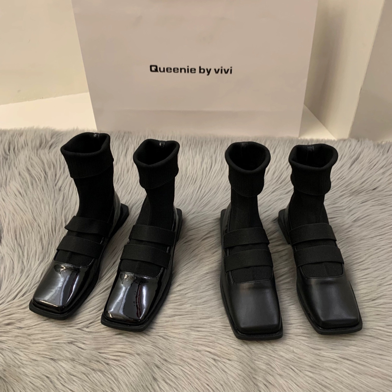 角頭痩せニット靴下靴女性靴2024年新作秋冬靴下靴楽福ショートブーツ靴下ブーツ