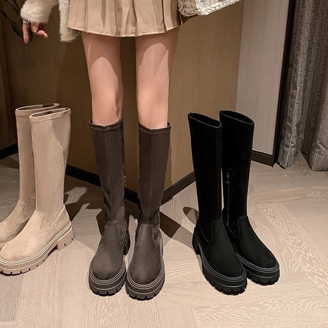 2024秋冬の先の細い靴のネットの赤い痩せた靴の中の筒の靴の砂のハイヒールとベルベットの通勤のショートブーツの女性