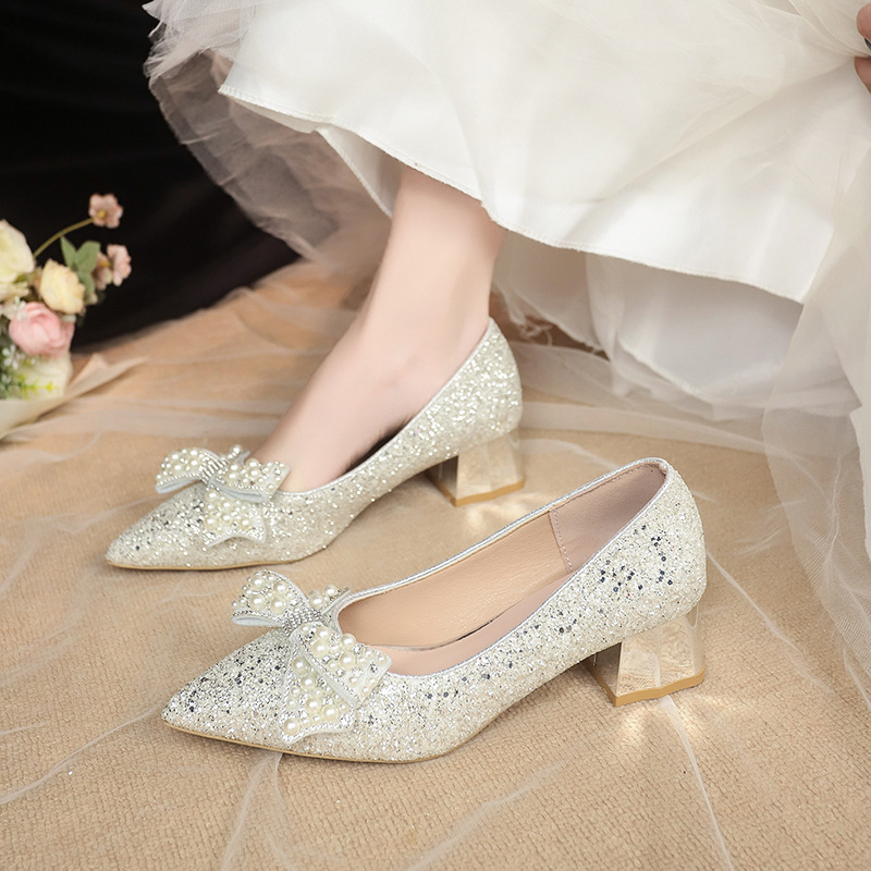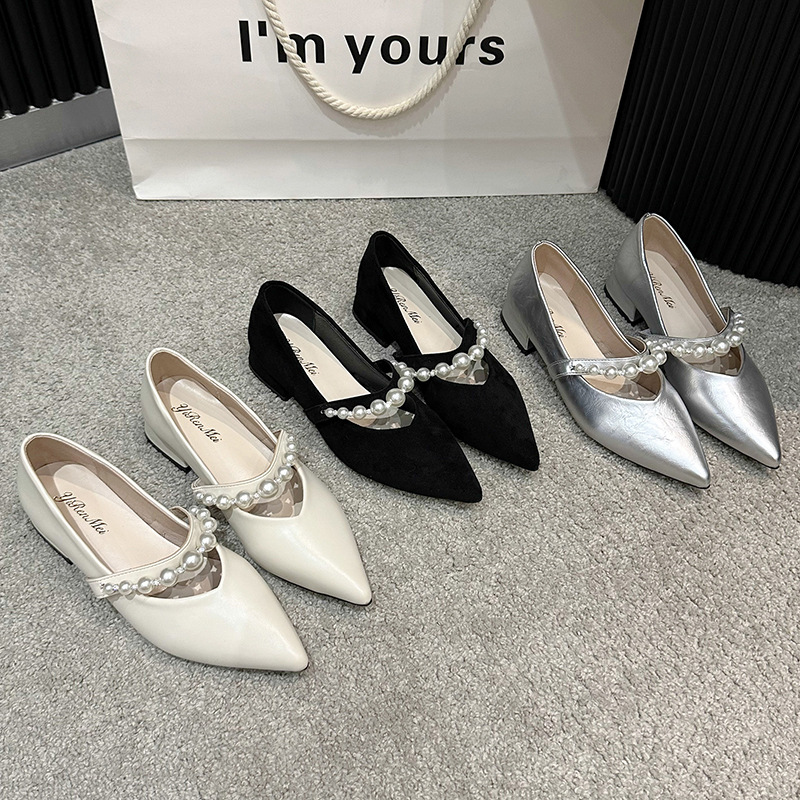 メアリー珍の靴の小さい人の低い先の銀色の帯の1字の感は靴の浅い口の2025坂の気質の春夏を掛けます。