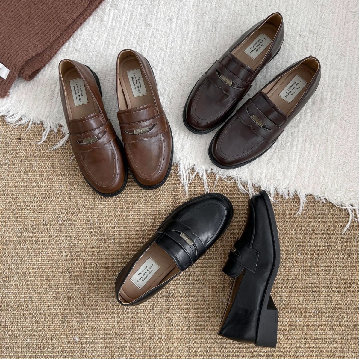 軟皮版 ~ フレンチレトロ軟皮一字バックルメアリー珍山茶花平底靴英倫風小革靴
