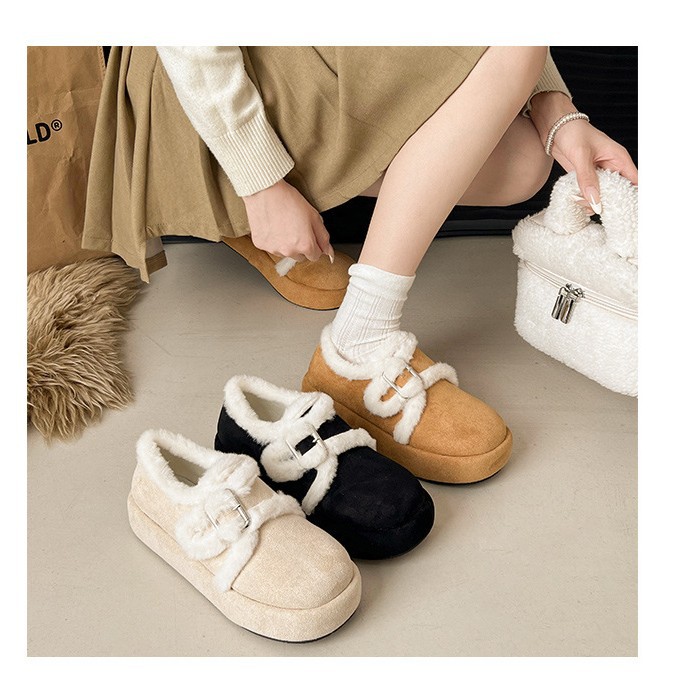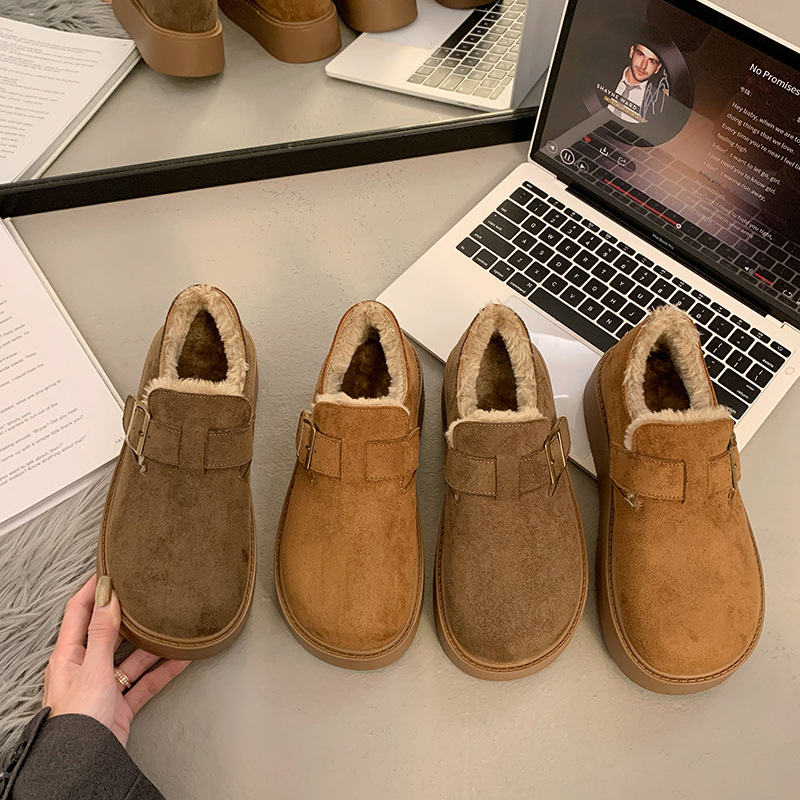 毛羽立ちの靴の女性は2024の新しい秋冬の厚い靴を履いています。