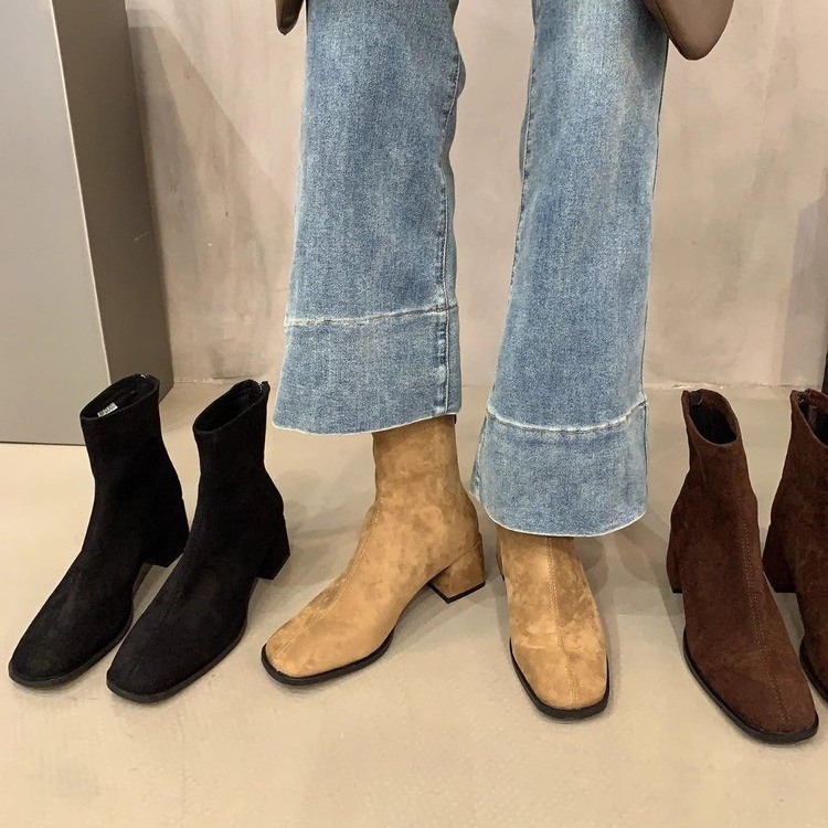 レトロなやせた靴茶色の靴下の靴の女性2024今年流行した秋冬の洋気の小さいショートブーツの小さい足首の靴