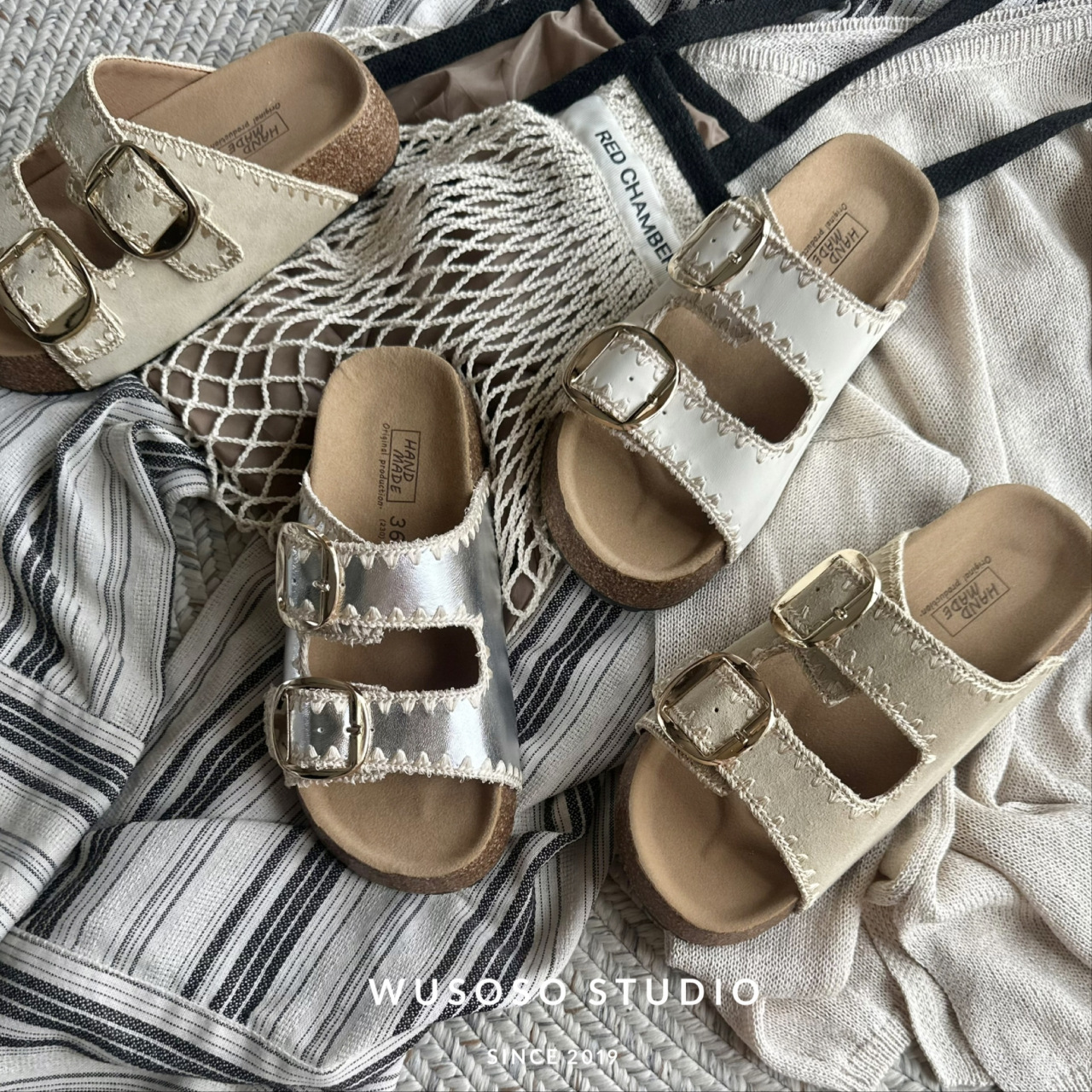 ビスケットの厚い底が高くなりました。女性2025新型の夏はカジュアルビーチ靴付きのスリッパを履いています。