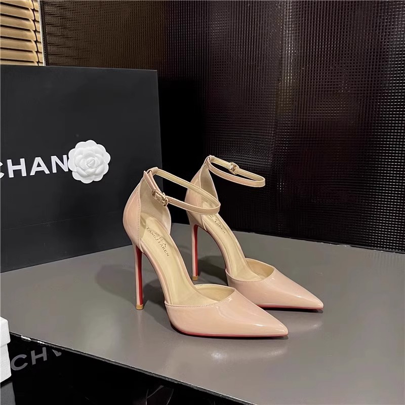 とがった頭の黒いハイヒールの女性の細い靴の中の赤い底の空気の質の2025の新型の1字はサンダルの秋を掛けます。