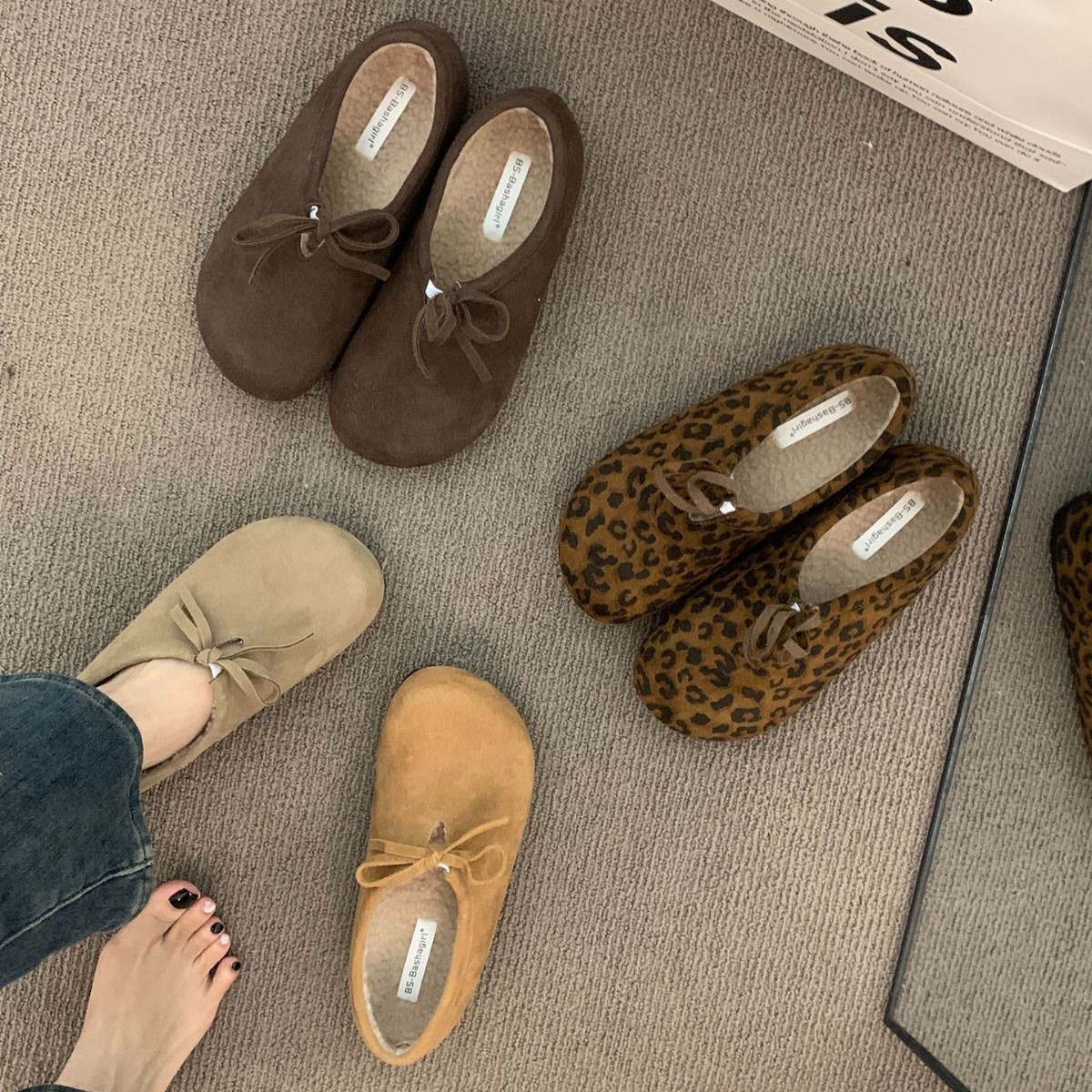 レトロなスエードの丸い靴の女性の春と秋の新型の大きい頭のベーケンの靴の子供の平底の足はレジャーの豆の靴を踏んでいます。