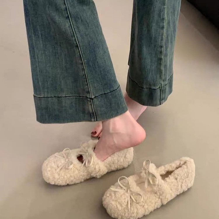 平底メアリー珍カジュアル毛羽立ちスリッパ女性2024冬の新型保温韓国版家庭パイル包頭綿引き
