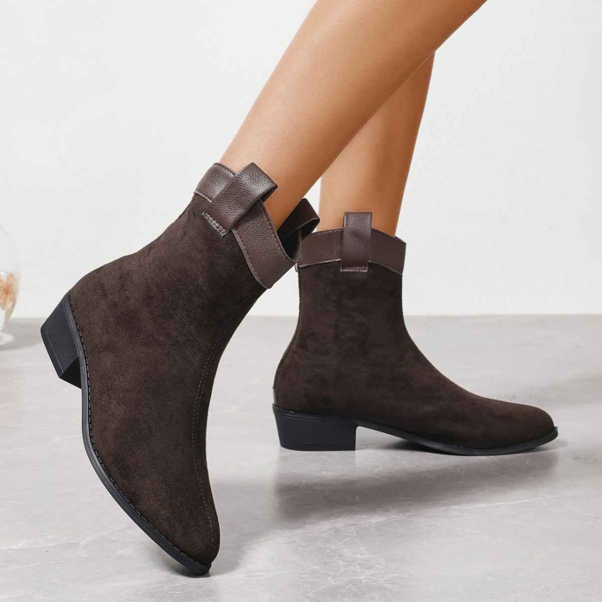 大きいサイズの柔らかい毛皮のレトロな西部のカウボーイの靴の女性の太さとショートブーツの秋の冬の砂の先のチェルシーの靴