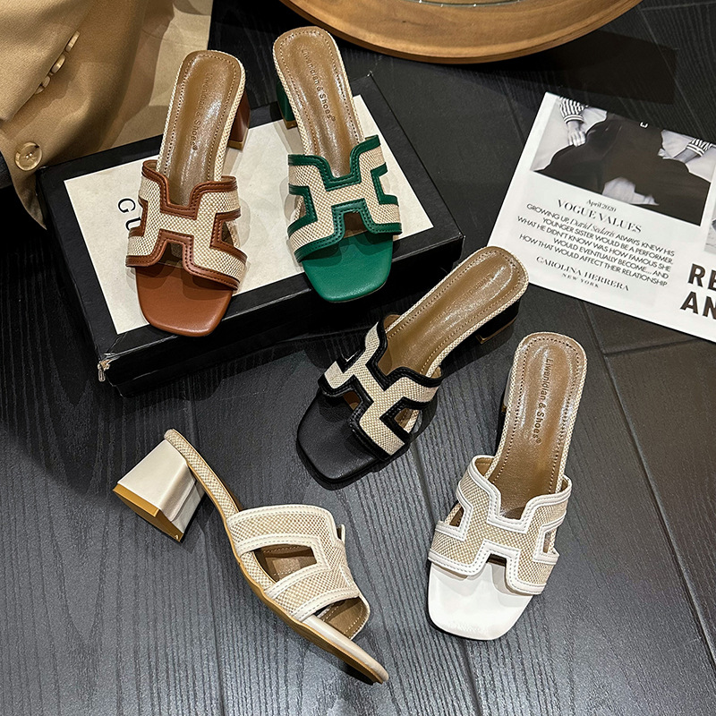 フランス式の黒いハイヒールの頭の半分のスリッパの女性の靴の外は2025新型の気質の名媛の半分の靴を着ます。