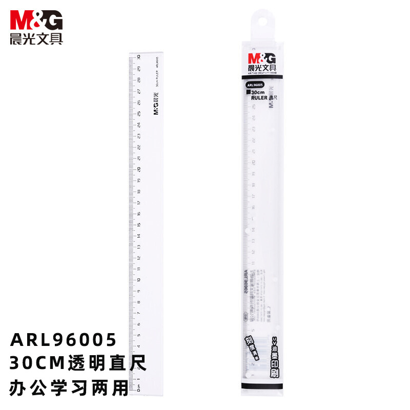 晨光ARL96004/96005直尺尺子亚克力绘图办公涂卡尺20/30cm