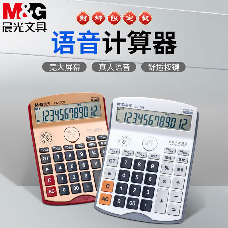 晨光ADG981D9新财神语音型计算器学生办公通用真人发音12位计算机