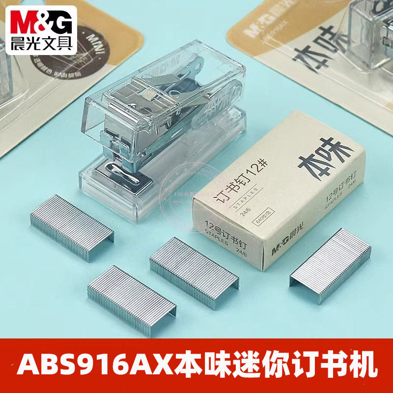 晨光ABS916AX本味迷你订书机套装办公装订机学生用12号透明订书器