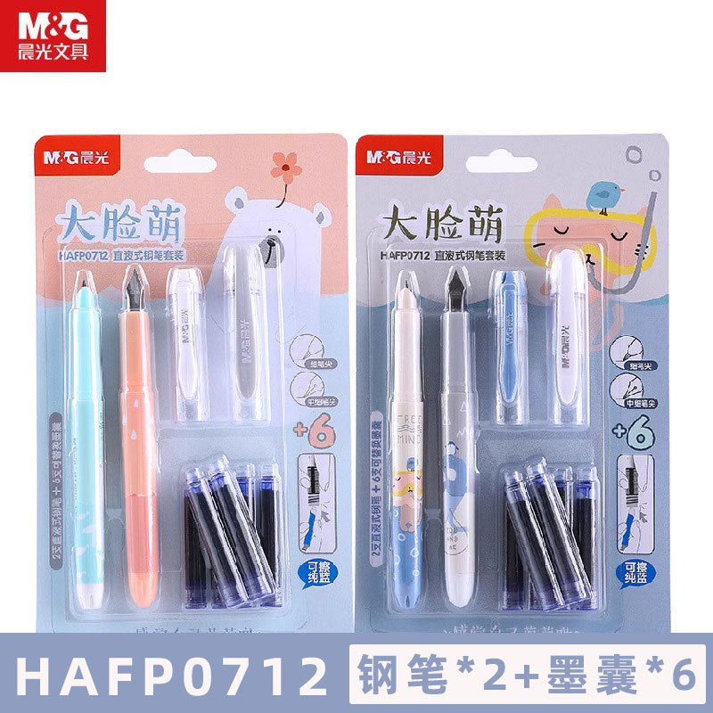晨光HAFP0758正姿直液式钢笔可替换墨囊钢笔套装学生优握墨囊可擦