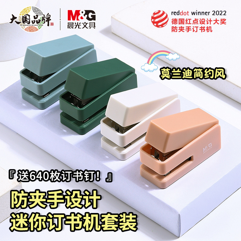 晨光ABS916CM莫兰迪迷你订书机套装小学生防夹手订书器文件装订机