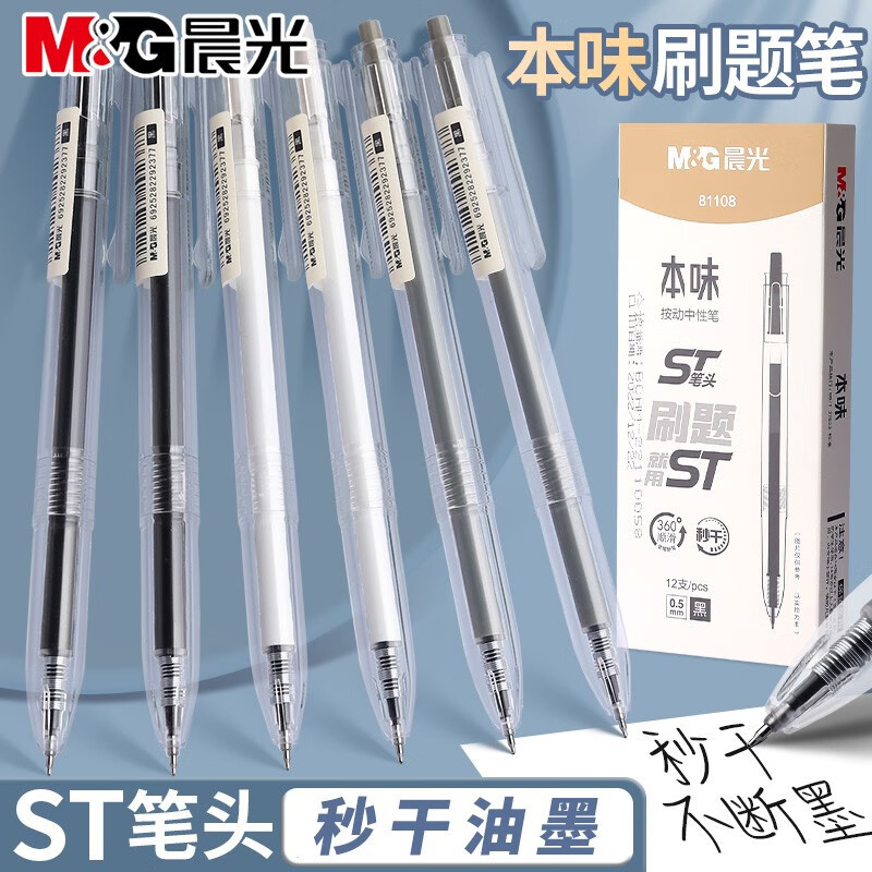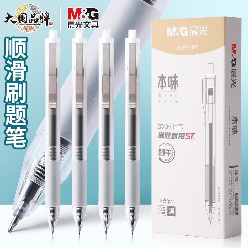 晨光AGP81405本味按动中性笔黑色ST笔头刷题笔学生考试速干签字笔
