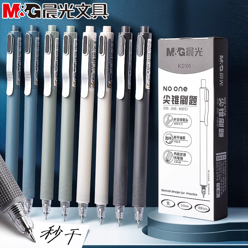 晨光K2101NO ONE 针尖锥按动中性笔秒干0.5mm黑色学生刷题办公笔