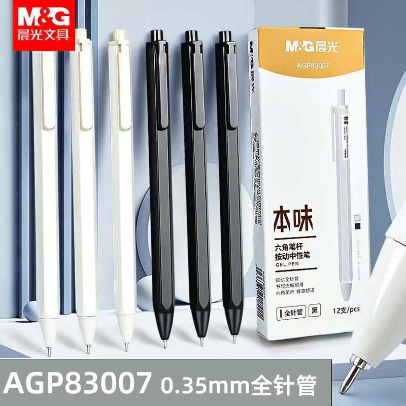 晨光AGP81108本味按动中性笔学生ST头水笔0.5mm全针管签字笔