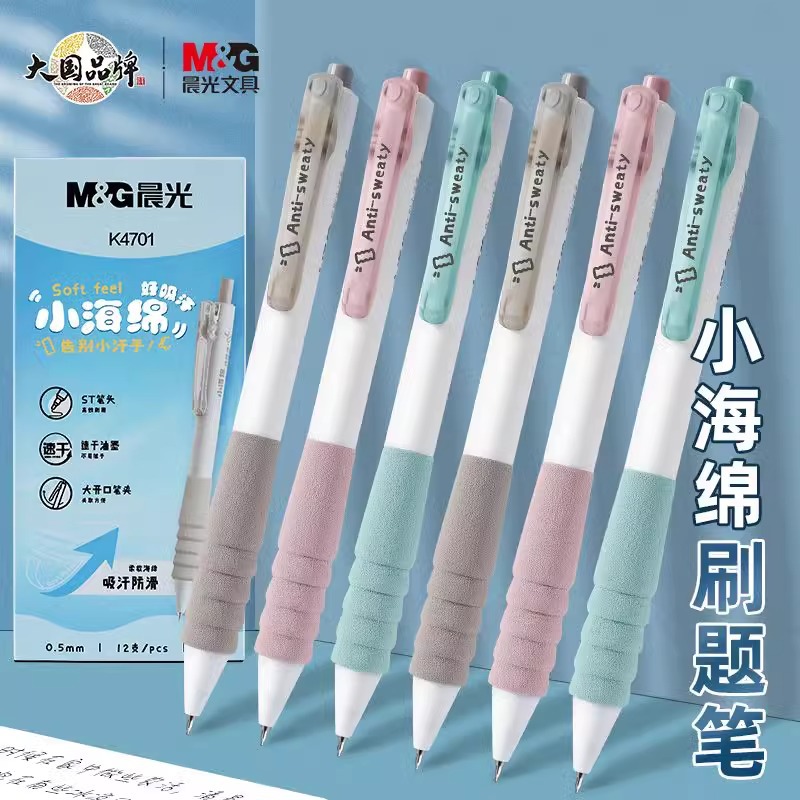 晨光K4701按动中性笔小海绵ST笔头黑色学生专用高颜值速干刷题笔