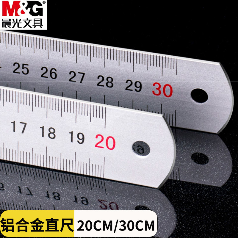 晨光20/30cm金属直尺不锈钢绘图测量工具钢直尺学生用铝合金尺子