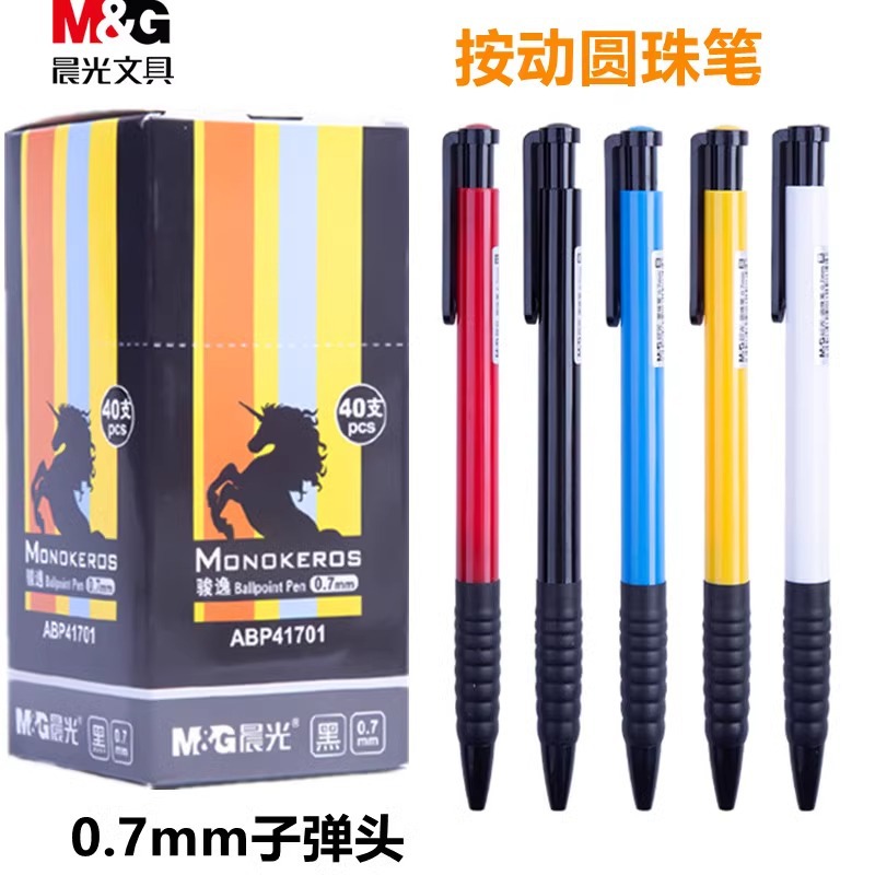 晨光按动圆珠笔批发ABP41701 骏逸原子笔顺滑0.7mm黑蓝红中油笔