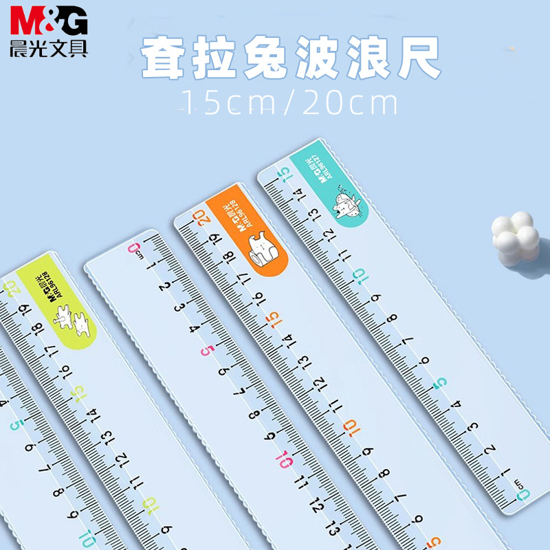 晨光耷拉兔透明直尺96127/96128带波浪线尺子小学生一二年级15/20