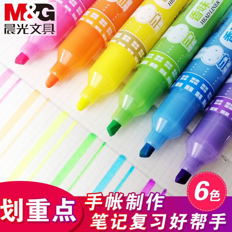 晨光6色/3色荧光笔 经典单头记号笔标记笔水性手绘手账笔AHMV7602