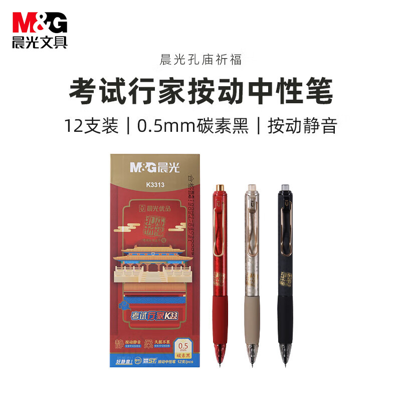 晨光孔庙祈福小分贝按动中性笔ST速干学生考试静音刷题笔AGPK3313