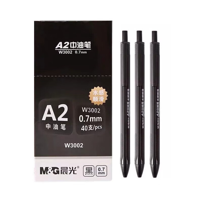 晨光A2中油笔按动圆珠笔0.7mm黑色红蓝色原子笔ABPW3002正品批发