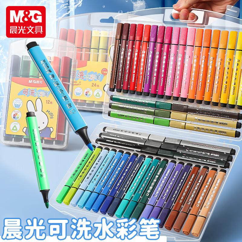 晨光可洗水彩笔三角杆套装中小学生美术画画用彩色笔幼儿园儿童