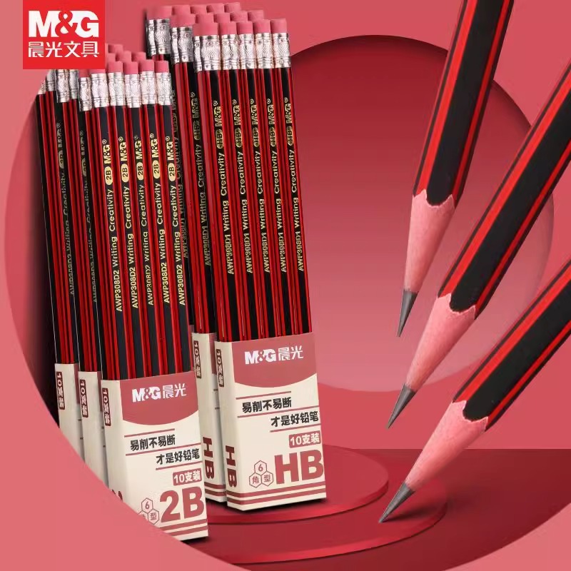晨光红黑条木杆铅笔一年级小学生儿童练字学习幼儿园初学写字笔