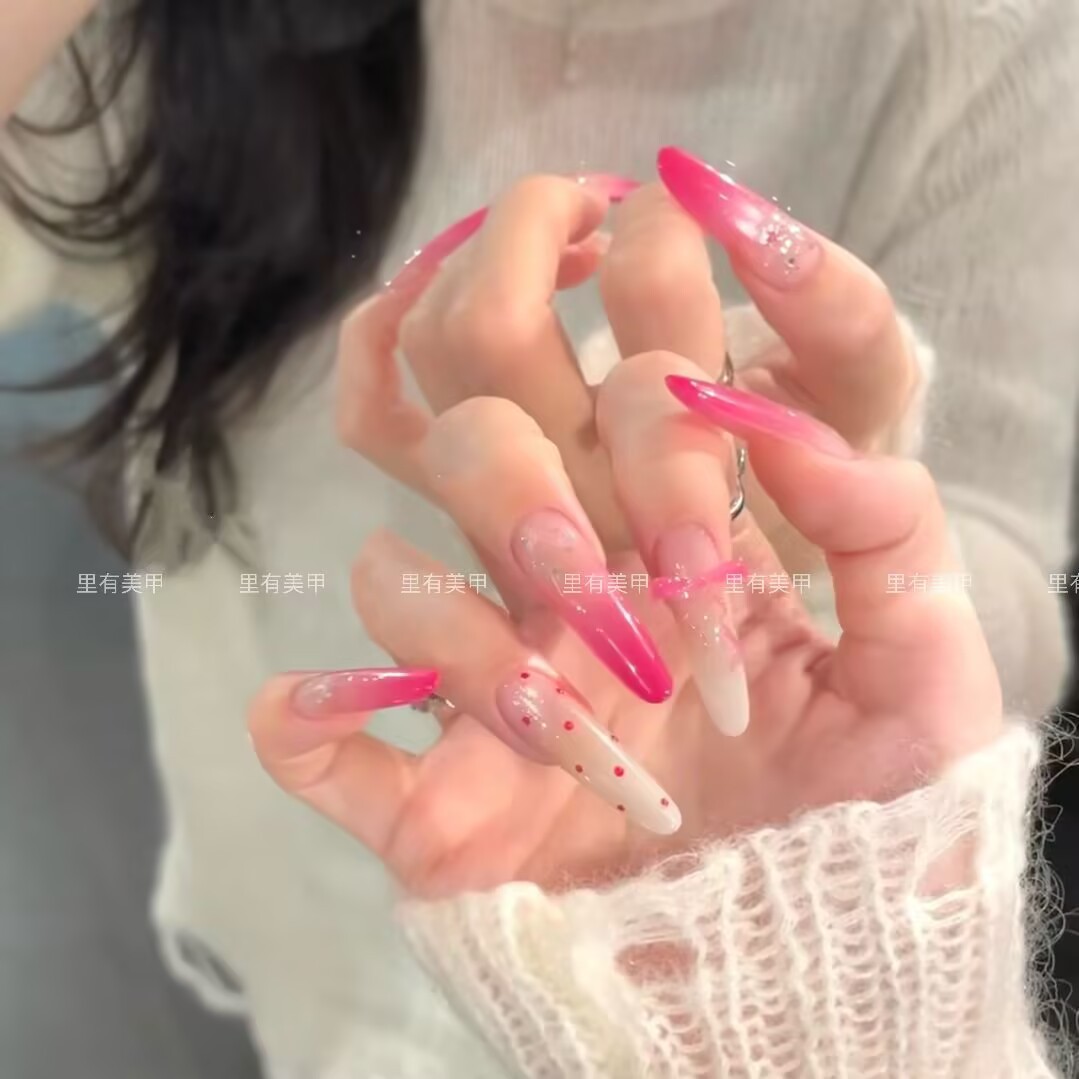 卸売431ホットガールバービーローズレッドグラデーション水玉プラススパンコールリボンマニキュア
