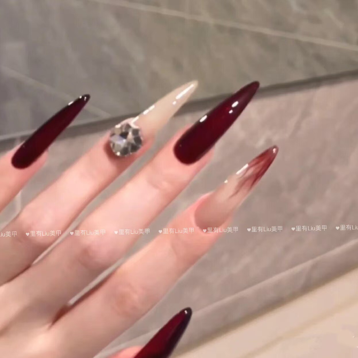 卸売425レッドグラデーションハイエンドホワイトニングマニキュア付き手作りウェアラブルマニキュア